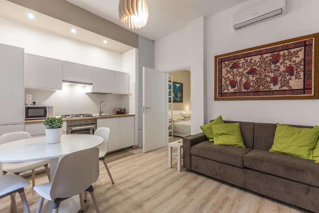 L’appartamento presenta 1 camera da letto, l’aria condizionata, un soggiorno, una cucina completamente attrezzata con frigorifero e macchina da caffè e un bagno con bidet e doccia. Usufruirete inoltre di lenzuola e asciugamani.